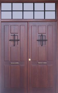 - Puerta fabricada en madera maciza para exterior. Para su mayor resistencia mediambiental, se trata la madera con barniz protección al exterior.